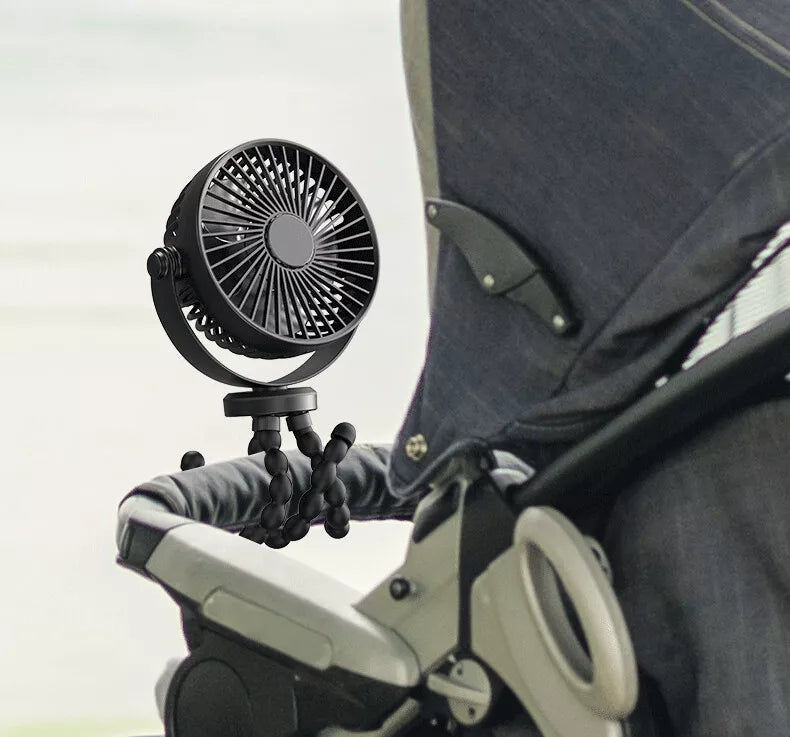 Bend or wrap the flexible tripod legs to secure your fan onto a stroller, cot, or desk, wherever cooling is needed.