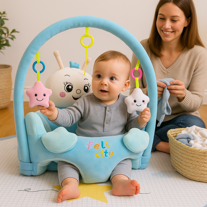 It supports early motor and sensory development by encouraging your baby to sit independently and interact with toys in a safe, upright position. This promotes hand eye coordination, balance, and curiosity, turning everyday playtime into a fun learning experience.